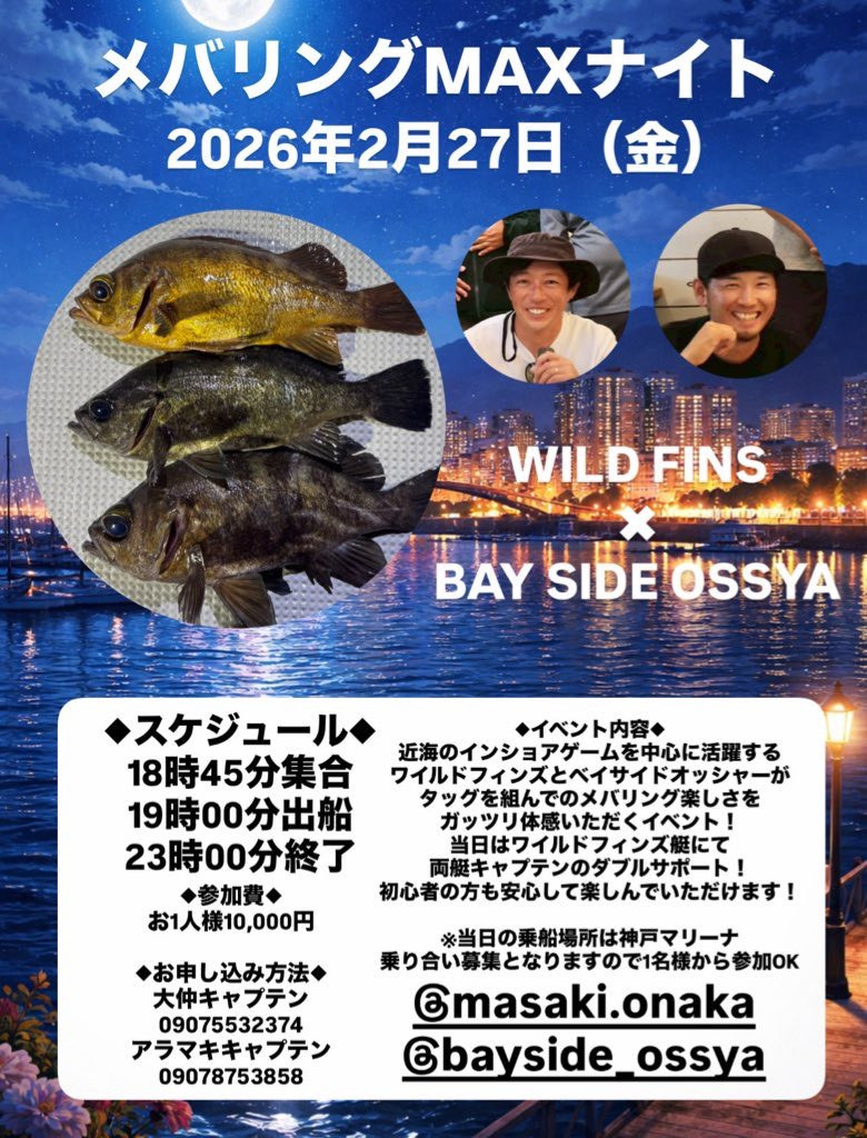 WILD FINS×BAYSIDE OSSYAでメバリングイベントを開催します。